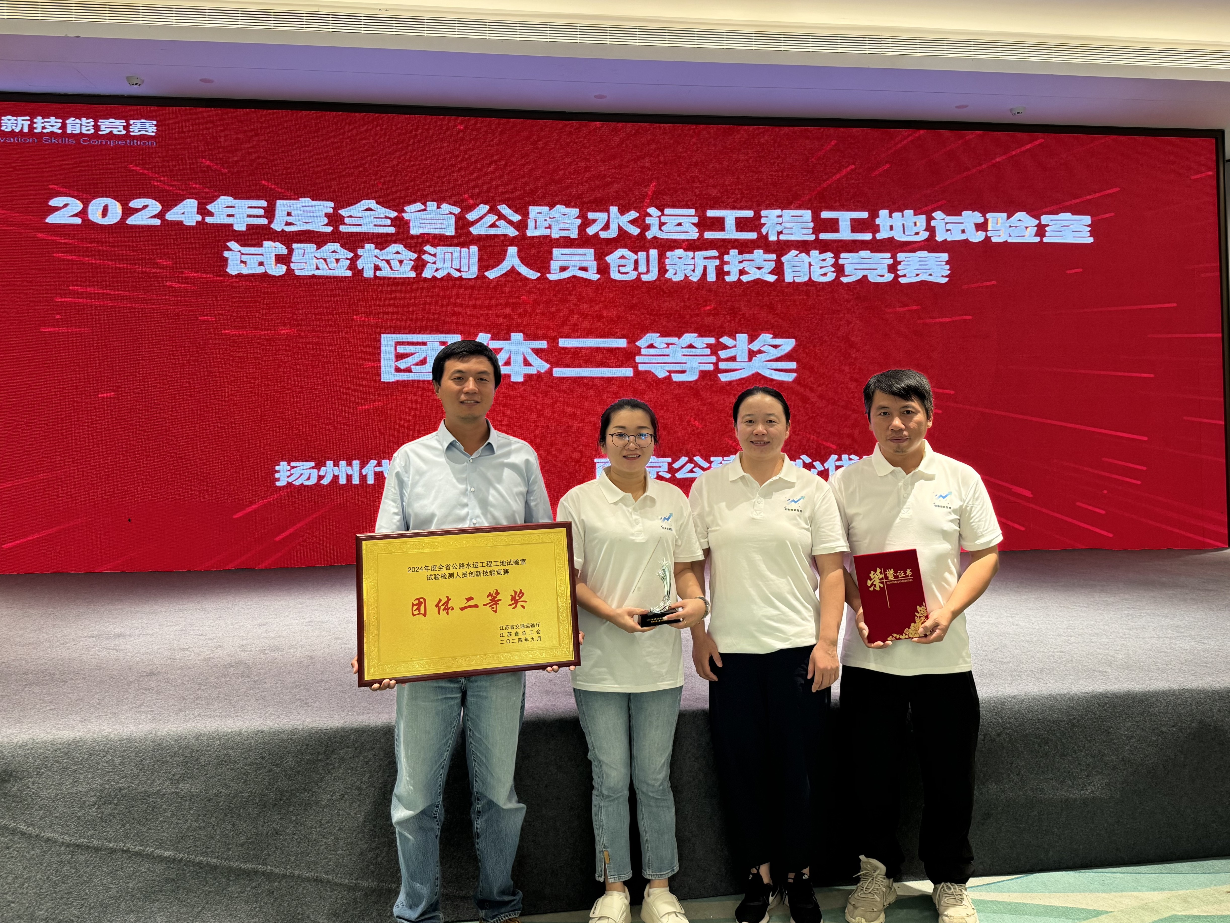 近日,由江苏省交通运输厅和江苏省总工会联合主办的2024年度全省公路水运工程工地试验室试验检测人员创新技能竞赛决赛在江苏泰州举行。我公司试验员仇克燕所在的市公建..