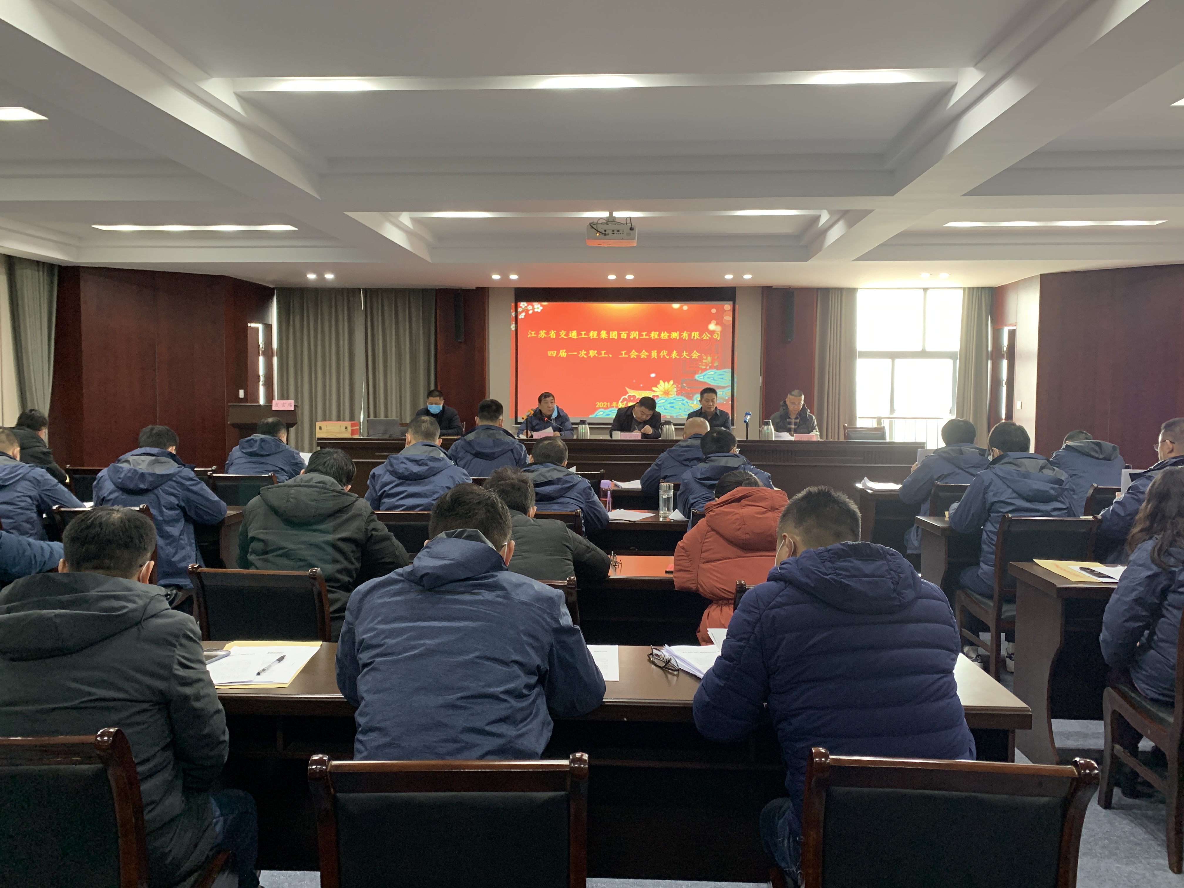 江苏省交通工程集团百润工程检测有限公司四届一次职工暨工会会员代表大会于2021年2月3日在百润公司四楼会议室召开。出席本次大会的正式代表35人,特邀代表2人。集..